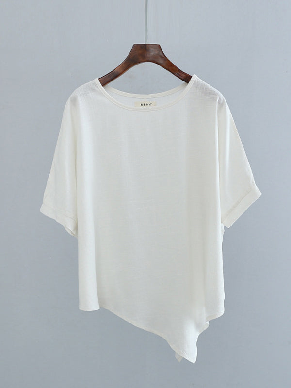 Artistic Retro Loose Linen Asymmetric T-Shirt Top