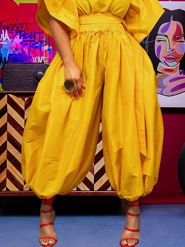 Harem Pants High Waisted Pleated Solid Color Split-Joint Pants Trousers