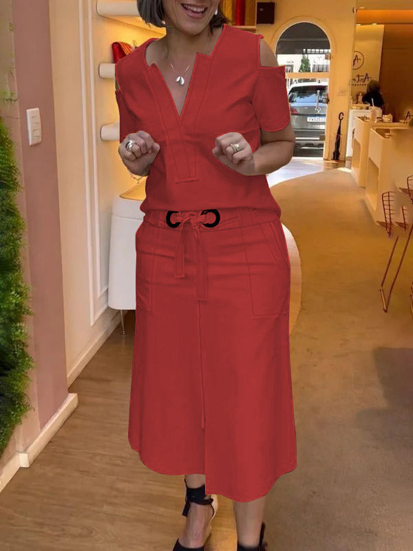 High Waisted Loose Split-Front Split-Joint Tied Waist Skirts